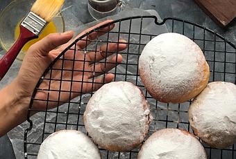 - Retirar del horno, pincelar con mantequilla y dejar enfriar sobre una bandeja.