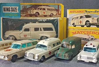 Los modelos de Matchbox son de dos series diferentes. La más grande, la Mercedes-Benz Binz, es de la serie King Size y es la pieza K-6. Otra ambulancia Mercedes-Benz Binz es de la Series 1-75 y también es un modelo Superfast. La Cadillac y la Bedford (Lomas Ambulance) son las otras dos piezas de la Series 1-75.