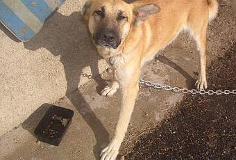 Amelia es una perrita con una vida muy dura, paso gran parte de su vida atada en una finca ella solita, donde los machos la embarazaban cada vez que entraba en celo,y donde veia sin poder hacer nada como sus cachorros eran atropellados por los coches que pasaban cerca de donde ella estaba atada.