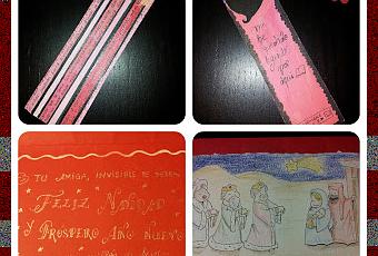 Lo abro al más puro estilo Hollywood dispuesta a gritar "Peeeeedrooooo". Una felicitación navideña con los reyes magos llevando los regalos a la virgen, señor e hijo, totalmente hand-made, que me recuerda a unos dibujos de alguno de los blogs que visito.
