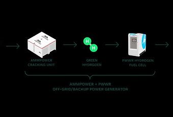 AmmPower se centra en el desarrollo de tecnología para convertir el amoníaco verde en hidrógeno verde, un proceso denominado «craqueo» del amoníaco. Con esta tecnología de craqueo, el hidrógeno puede almacenarse y transportarse de forma segura por todo el mundo como amoníaco y, al llegar a su destino, volver a convertirse en hidrógeno para un uso final más limpio y eficiente. PWWR está desarrollando sistemas de pilas de combustible de hidrógeno de bajo coste para los mercados mundiales, que pueden convertir el hidrógeno en electricidad con cero emisiones de CO2.