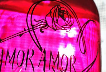 El frasco mantiene el diseño de las versiones anteriores pero en este caso es de color rosa eléctrico, casi fluorescente. La rosa dibujada es metálica y con espinas.