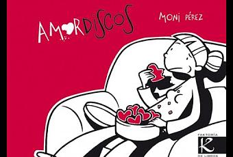 Con muchas dosis de humor e ironía, estas viñetas mudas reflejan las peripecias del amor que, además de mordiscos, también pueden deparar dentelladas.Este es uno de esos libros por los que es imposible no sentir un flechazo instantáneo. Lo leí hace unos años, cuando Moni Pérez vino a la biblioteca de Azuqueca dentro del programa Lecturarte, pero este año lo he releído para ver si me inspiraba alguna actividad para San Valentín. La verdad es que lo de leer es un decir, porque no tiene una sola palabra, pero también es cierto que en una cultura tan visual como la que vivimos hoy en día es importante leer imágenes, aprender a hacerlo y decodificarlas adecuadamente, en todos sus sentidos. Por eso, en Halloween jugué mucho con los niños y niñas que acuden a las actividades de la Casita de los Cuentos Eva Ortiz con otra obra gráfica que se titula Croc Croc en la escuela de los esqueletitos (en su momento, no me dio tiempo a reseñarla, pero espero que este año no se me escape). Pensé que podría hacer algo parecido con Amordiscos, pero no: por mucho que en algunas páginas haya visto que este es un libro para niños a partir de 9 años, yo creo que es un libro para adultos. Como mucho, para jóvenes; pero no para niños. Considero que hay que tener un bagaje emocional para profundizar en lo que nos cuentan las imágenes, más allá de quedarnos en el chiste fácil que pueden ver los niños en sus páginas.