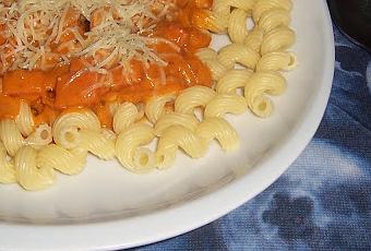 Cocemos la pasta, si quieres ver como cocer la pasta pincha aquí, y servimos con la salsa y el queso rallado por encima. Buen provecho