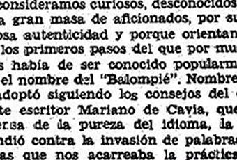 En el mismo artículo se produce el nacimiento de la palabra “balompié”.