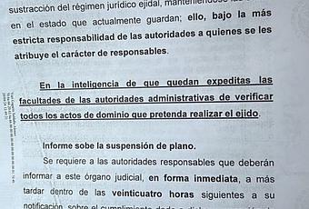 El día de ayer trascendió la suspensión por la vía de amparo promovida por una persona miembro del Frente Agrario Pro Familias de la Sierra de San Miguelito, suspensión concedida por Juzgado Cuarto de Distrito, y en el que se lee la siguiente sentencia: