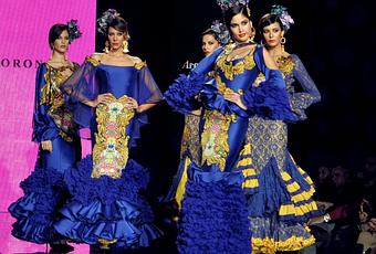 Javier García presentó en su colección "Tangobertura" un conjunto de prendas cautivadoras. vestidos entallados y coloridos donde se unían diversos elementos como la pedrería, las aplicaciones florales, el encaje y los bordados. Con respecto a los colores y los estampados, no faltaron el rosa, el amarillo, el verde y el azul, entre otros, y los lunares pequeños y motivos florales, que sin duda alguna una serán tendencia en los trajes de flamenca de este año.