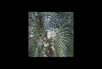 El follaje de esta planta medicinal es persistente, su copa es amplia, y esta planta tiene ramillas colgantes de color verde claro. Las hojas de la Anacahuita son compuestas, pinnadas, alternas, glabras, en forma de helecho, están divididas en numerosos folíolos estrechos y lanceolados; lisos y de color verde intenso. Las flores de esta planta medicinal son amarillentas, dispuestas por lo general en panojas terminales. Esta planta medicinal florece en primavera y verano. La anacahuita tiene frutos en forma de drupa globosa, de color rojizo, reunidos en panojas, con una sola semilla en cada fruto. La parte utilizada de la anacahuita con fines medicinales son sus hojas, resina, y corteza. Los frutos de esta planta medicinal tienen gusto a pimienta, usándose como condimento.