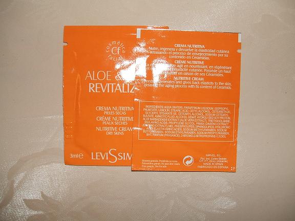 La siguiente muestra es una crema nutritiva para pieles secas, que está enriquecida de aloe. Cómo os podéis imaginar se la he dado a mi hermana, ya que tiene este tipo de piel. Esta crema promete nutrir, regenerar y devolver la elasticidad de la piel, retrasando el proceso de envejecimiento por su contenido de ceramidas. En cuando mi hermana la pruebe os informaré que tal le ha ido.