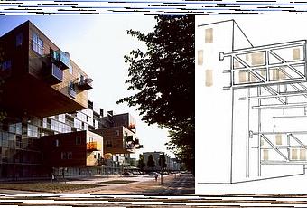 100 viviendas protegidas Wozoco. Arq: MVRDVSi tenemos un solar que permite la construcción de 87 viviendas y una normativa muy restrictiva sobre la huella del edificio y las alturas, pero el promotor se empeña en añadir otras 13 para alcanzar los 100 apartamentos, colgamos estos últimos y contentamos a todas las partes... ¡¡¡además saldremos en las revistas!!!