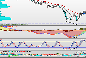 En el gráfico diario de ACS, los 16.25 se han superado (podríamos considerar que el doble suelo se ha activado), después ha hecho un pull a la resistencia rota. Hoy ha roto la línea de tendencia bajista, eso puede provocar un movimiento hasta los 19.12, donde está la primera resistencia. Si el objetivo del doble suelo se cumple, podríamos hablar de una proyección de subida hasta los 22.75 Euros. Suerte y buenas decisiones.
