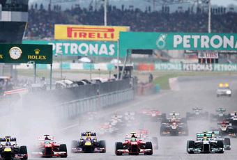 Antes del comienzo de la carrera ya empezaban a caer las primeras gotas de lluvia sobre el trazado de Kuala Lumpur lo que ponía todas las alarmas en los equipos a la hora de elegir compuestos para la salida. Durante la vuelta que realizan los pilotos para quitarse combustible de más y ver como esta la pista, muchos pilotos se salían por la curva 3 del circuito debido a la gran cantidad de agua que había en esa zona y obligaba a los pilotos a volver a entra al box para que le quitaran los restos de hierba o piedras que se quedaran en el monoplaza.