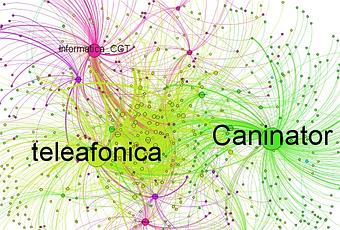 Un 90% de la conversación circula alrededor de perfiles muy próximos a CGT. Teleafónica (perfil crítico con Telefónica y muy próximo con CGT, sólo hay que ver su blog, los enlaces y el contendio) Javier Couso (eurodiputado de IU que desde 2010 está colaborando con CGT en difundir sus convocatorias) o el propio perfil de Informática CGT, sólo estos 3 perfiles concentran ese % de la conversación (el siguiente perfil, @ahorapodemos a pesar de su fuerza en la red sólo concentra el 6,54% de la conversación).
