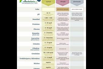 Han sido muchos los comentarios que preguntan en el blog que significación los resultados de un análisis de orina y si los parámetros son o no normales. Me han pasado una infografía de la web www.elherbolario.com bastante ilustrativo al respecto...Antes que nada y como siempre, recuerdo que el que ha de interpretar el análisis es el médico que nos lo ha solicitado, ya que el conoce el motivo del mismo y otros factores que le pueden llevar a un diagnóstico. Esta información es meramente ilustrativa y no debemos alarmarnos sin la valoración del profesional sanitario...