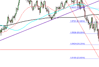 Vemos primero la superación de la bajista roja y el posterior throwback quirúrgico sobre la bajista ya superada, para volver a atacar y superar con potencia la clavicular del HCH Invertido, y con una proyección casi perfecta al 50% fibo1.5608 de toda la caída 1.6384-1.4831, coincidencia ¿o no? No lo se, pero a mi me da mas fiabilidad en el objetivo.