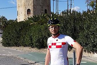 Posando con la equipación ciclista “Bola del Mundo” de El Mazo