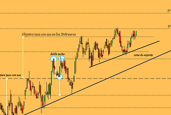 Los 21.70 euros se antojan como perfecto objetivo una vez superada la zona de máximos relativos previos en los 20.60 euros. Recordar que no se deben anticipar acontecimientos y que los 20.60 euros por acción aún no han sido rebasados.