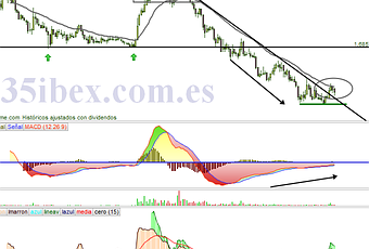 Otro punto a favor, que puede determinar a corto y medio plazo el devenir de Ercros, es que ha roto su línea de tendencia bajista, aunque parece que ahora está haciendo un nuevo pull back, todo para romper los nervios de alguien.