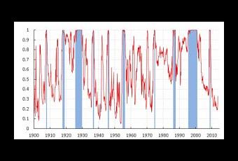 Todo esto ha sido conocido durante algún tiempo, pero la contribución de Phillips proporciona un método estadístico más atractivo para determinar cuándo un del precio activo tiene un comportamiento explosivo. Cuando se aplica este método, proporciona una medida continua de la probabilidad de que el comportamiento de la burbuja esté presente, y entonces podemos decir que existe una burbuja cuando esta probabilidad cruza un umbral específico. Elegimos un 95% de probabilidad para establecer este umbral, lo que significa que sin ella vamos a identificar una burbuja alrededor del 5% del tiempo.