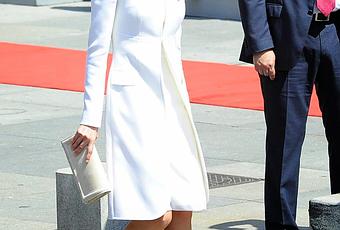 Hace unos días asistimos a un acto histórico: la coronación de Felipe VI como rey de España pero, además de en él, nuestros ojos se fijaron en Letizia que lució maravillosa con un diseño de Felipe Varela en blanco, de corte a la rodilla y con abrigo de verano plagado de pedrería en el cuello.