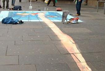 Este artista , de nombre Brussup, ha puesto los dibujos ( deformados) en estos links ( cubo, cinta , deportiva )para que podáis experimentar con la anamorfosis. Sólo se ven las imágenes correctamente, desde el ángulo derecho…