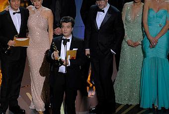 " Theartist" won the best film, the best director, the best actor... this film,a black and white silent film, was theclear winner of the night.