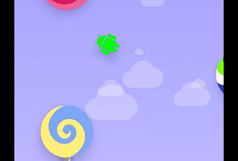 En este clone quién toma el papel del pájaro que tiene que evitar tocar los chupetines (Lollipops) es la mascota de Android.