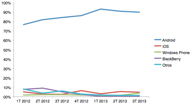 Blackberry ha muerto. Windows 8 simplemente no se preocupa por el usuario y es complicado. Ios...es caro y cerrado aunque sin duda es la alternativa mas viable para los ricos pero en el mundo no pasa de 15 % de cuota. Por lo visto nadie tiene con que plantearle cara a Android. Nokia y Apple tendrian que regalar sus dispositivos y aun asi...no convencerian a todos.