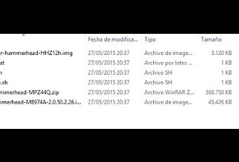 Ahora descomprimimos en la carpeta "platform-tools" el archivo image-hammerhead-MPZ44Q.zip, obteniendo los archivos que aparecen en la imagen:
