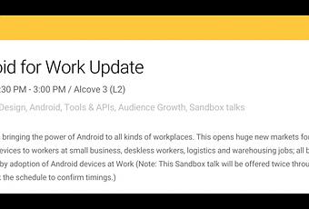 En concreto en la charla de "Android for Work update", donde se puede leer perfectamente que Android M traerá el poder de Android a todos los lugares.