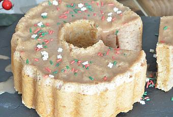 Le ha tocado el turno a uno de mis dulces favoritos, el angel food cake, me gusta mucho por su textura esponjosa y que no llena al comerlo y ya con estas especias está impresionante. ¡Qué rico! Era ir a la cocina y coger un trozo y volver y otro...