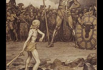 David and Goliath, a colour lithograph by Osmar Schindler (c. 1888) (Photo credit: Wikipedia)