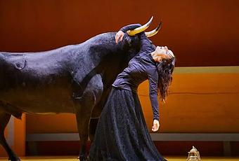 Juan Goytisolo, en su obra España y los españoles (editada por Lumen en el año 1969) cuando habla de Hermingway nos dice que para él la interpretación de las corridas de toros son un acto, fundamentalmente de orden religioso, cuando un hombre (el torero) se rebela contra la muerte, porque en ese acto asume el tributo divino de dispensarla, haciendo del torero un émulo de Dios. Y nos sigue apuntando que este matiz metafísico del matador de toros alude a su fundamento sexual. Un fundamento sexual que podríamos reinterpretar diciendo que el toreo es la danza entre el amor y la muerte. Quizá, por ello la actriz nos apunta en un momento dado que: «Lo único que nos libera de la muerte es desearla». Una exploración entre mística y estética que en el caso de la obra de Angélica Liddell, Liebestod, escarba en la búsqueda de la belleza a través del dolor; una indagación del dolor que implora llegar a ese punto de no retorno que es la muerte. Para ello, la dramaturga catalana se apoya en las verdades que en sí mismo posee el miedo como transfiguración del alma enjaulada. Una desazón, la del miedo, que la obliga a auto flagelarse cuando se hace cortes en las piernas y en las manos y tiñe un pañuelo blanco con su propia sangre. Una exaltación de la pureza que ella adorna como si se tratase de la ceremonia de la Santa Misa. Unas similitudes con el sacrificio que en dicha ceremonia se hacen del cuerpo y la sangre de Cristo que ella asume como propias cuando bebe vino y come pan sobre el escenario. Lo que de una forma intensa y directa no sitúa en ese misticismo sobre el que la Liddell, en cada obra nueva de teatro que representa, ahonda. Una ofrenda que la define como una mística más de la cultura española. Y que, en Liebestod, se reafirma con la vestimenta negra con la que se adorna y que la aproxima a una virgen enlutada y doliente. A esa viva imagen de la madre de Dios, Liddell le contrapone (para corroborar su idea de la muerte) la figura disecada de un grandioso toro negro con el que comparte escenario. Para todo ello, se apoya, una vez más, en las palabras Emil Cioran como si fueran parte de la Biblia,. Unas palabras a las que acompañan una majestuosa y estética puesta escena donde se mezclan los colores de la Fiesta (el rosa de las muletas, el marrón del albero, el tomo amarillo de la luz del sol) en una fusión de arte y estética inigualables, y que buscan, sin duda, la exaltación de una belleza pictórica que llegue al espectador sin intermediarios, como también sucede en los inmensos telones que se abren y cierran a lo largo de la representación y que cubren de tonalidades rosa toda la sala, o con el cráneo de Cioran, o con la asombrosa mirada de unos monos que nos observan perplejos ante nuestro silencio.