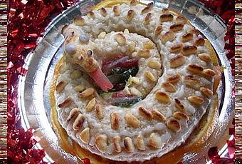 3-ESTIRAR LA MASA CON UN RODILLO, ENCIMA DE UN PAPEL DE HORNEAR, SI SE OS PEGA UN POCO, ESPOLVOREAR AZÚCAR GLAS. RELLENAR CON LA YEMA.. ENROLLAR, AYUDÁNDONOS CON EL PAPEL Y FORMAR LA ANGUILA, OJITOS, ABRIR LA BOCA, HACER MUESCAS CON UNA CUCHARITA, FORMAR BOLITAS CON LA YEMA RESERVADA, APLASTARLAS Y COLOCARLAS EN LAS RANURAS, A MODO DE ESCAMAS.