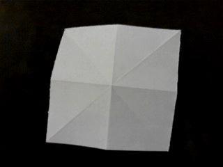 Por último, hagamos una ¨base de pájaro¨ con los 2 triángulos centrales, o sea, con el rombo, un ¨cuadrado deformado¨. Y en los triángulos restantes de sus ¨extensiones¨, en uno una ¨oreja de conejo¨ y en el otro una ¨doble oreja¨ y ¨estirando¨ su punta central.