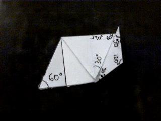 Si volvemos al tema de los ángulos, nos damos cuenta que el triángulo de 60° esta formado por 4 triángulos iguales de 60°. Al ver los dobleces marcados y los 4 triángulos no puedo evitar recordar a la ¨trifuerza¨ que aparece en ¨La leyenda de Zelda¨, uno de mis videojuegos favoritos, jejeje.