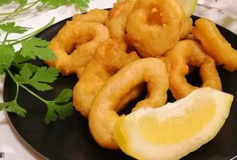 Lavar y secar, con papel absorbente, las anillas de calamar.