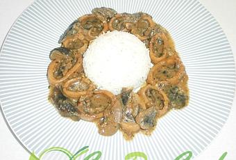 Tapar y dejar cocer hasta que las anillas estén tiernas. Si es necesario añadir más agua durante la cocción.