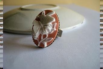 Bonito anillo realizado con base de bronce y delicado camafeo rosa y blanco con imagen de mariposa.
