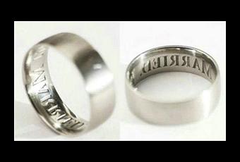 Nueva York, EU.- Una tienda por Internet ha puesto a la venta un anillo de bodas que evita las infidelidades, el cual lleva grabadas las palabras ‘Estoy Casado’. Con un precio aproximado a los 430 euros.