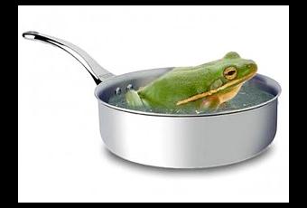 “pasa como una rana que introdujésemos en una olla con agua a fuego lento… aunque pueda saltar fuera de la olla, sus sentidos no son capaces de percibir el suave incremento de temperatura, y acaba cociéndose sin darse cuenta…” Salvador Aragón