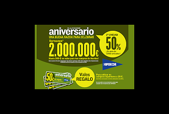 Premios o promociones que no consiguen levantarnos del sofá de casa. Pero resulta que Hipercor celebra su aniversario adaptándose a los tiempos que corren (y a los que se acercan -por la Navidad-), y ofrecen hasta 2 millones de Euros en descuentos, a los que supan la guinda de todas las guindas en periodos pre-navideños, y es un 50% en langostinos y gambas... así que no creo que la gente se quede indiferente ante la forma en la que Hipercor ha decidido celebrar su aniversario.