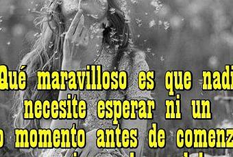 1- ¡Qué maravilloso es que nadie necesite esperar ni un solo momento antes de comenzar a mejorar el mundo!2-“Piensa en toda la belleza que dejas a tu alrededor y sé feliz.” 3-“Me he dado cuenta que siempre hay un poco de belleza: en la naturaleza, en el sol, la libertad, en nosotros mismos; y todo esto puede ayudarme.” 4-“Una persona puede sentirse sola, incluso siendo amada por muchas.”