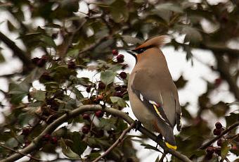 Este año, las espineras (Crataegus monogyna) por las que los Ampelis parecen sentir una especial predilección, se encuentran muy cargadas de frutos, por lo que no sería raro que hubiera muchos más ejemplares de esta especie por nuestros montes. La presencia de un pequeño grupo de estos arbustos en una zona urbana como Avilés, rodeada de otras especies "menos apetitosas", es lo que parece condicionar la presencia casi constante de ese ejemplar solitario que apenas se mueve de la zona. A pesar de que zorzales, mirlos y currucas se alimentan continuamente de las bayas, aun hay suficiencte alimento para todos, por lo que es probable que si no se siente molestado pueda permanecer varias semanas en el mismo lugar. Por cierto, mientras hoy estábamos observándolo, apareció un gavilán y el ampelis se fue volando y no regresó en la siguiente media hora que permanecimos allí.