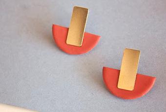 Los materiales principales que usa son la arcilla polimérica, que se moldea a mano y se endurece en el horno, y el latón. Me gusta mucho jugar con los colores y crear el contraste con el dorado del latón para dar a cada pieza un toque de distinción.