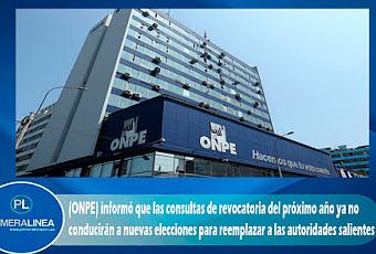 ONPE – informó que consulta ya no dará lugar a nuevas eleccionesLa revocatoria del próximo año no dará lugar a la convocatoria de nuevas elecciones para reemplazar a las autoridades que resulten separados del cargo – avisó la Oficina Nacional de Procesos Electorales (ONPE).