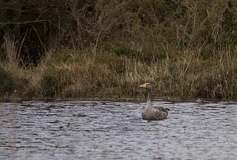 Hace un par de semanas, mientras recorría la zona del cabu Bustu (Asturies) durante la realización del censo de aves invernantes me encontré con una sorpresa inesperada. La pequeña charca restaurada hace unos años se encontraba llena de agua debido a las intensas precipitaciones de los últimos días. Un grupo de seis azulones (Anas platyrhynchos) se escondía entre la vegetación y de repente, en un extremo de la charca apareció un ejemplar de Ánsar común (Anser anser) que se mostraba muy nervioso, estirando la cabeza continuamente.