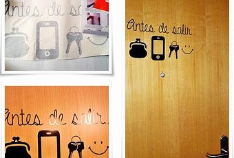 Un recordatorio perfecto para visualizar antes de salir de casa: monedero, móvil, llaves y una sonrisa.En la shop de Studio Cuatro, a parte de este vinilo, podéis encontrar otros tantos chulísimos.