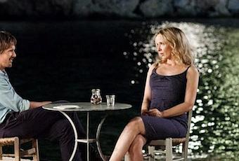 Antes del anochecer toma el rumbo incómodo de romper dos de las principales premisas de las anteriores películas: primero, el tiempo real en la narración aquí queda fragmentado en un largo día que concluirá a la medianoche; segundo, la inclusión de varios secundarios de peso que nos darán una visión caleidoscópica de la pareja más allá de los protagonistas. Estas dos nuevas armas inundan la primera parte de la película haciéndonos temer que no vamos a presenciar una versión griega de los inolvidables paseos por Viena y París.
