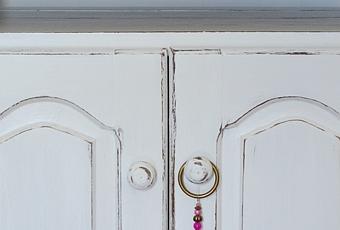 Cuando Mariana y su marido vinieron a retirar estos tres muebles, me dejaron una cómoda blanca de roble DIVINA! Era de su abuela, con un mármol gris oscuro arriba... muy muy linda! Vimos algunas otras opciones, pero Mariana quería algo simple: verla blanca, con desgastes.